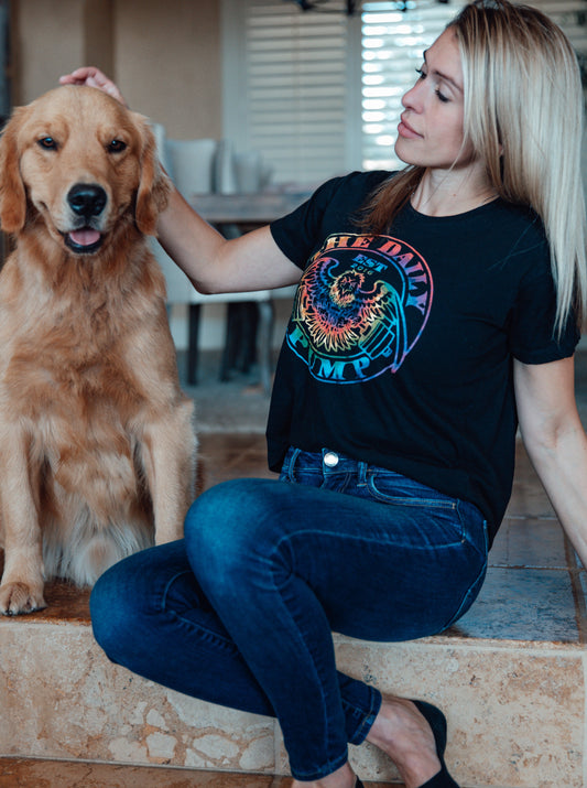 Women's Daily Pump Tie-Dye Logo Hi-Lo Tee // Black