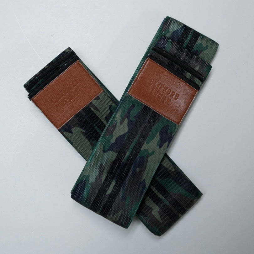Knee Wraps are the squat session essential. Our wraps provide support for all squat variants, help to prevent injury, and reduce pressure on your quadriceps (where they attach to your knee). Available in a 6.5' length, Camp Print, finished with leather branding.