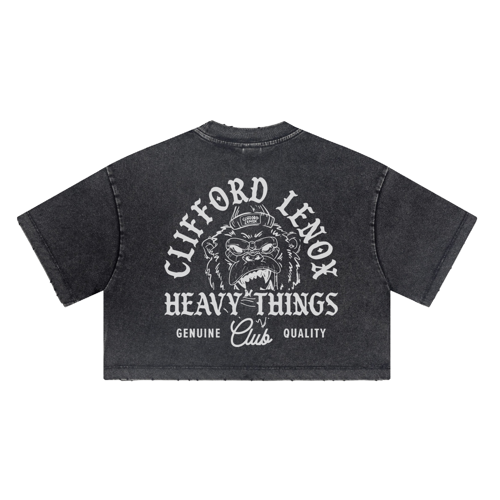 Because heavy things aren’t just for the boys! This cropped tee is built for the women who show up, put in the work, and lift whatever’s in front of them, in or out of the gym. A mid weight double-knit crop with a soft, yet structured feel. Designed with a wide torso, true-to-size fit in the shoulders and neck, and subtle distressing for that perfect vintage look.